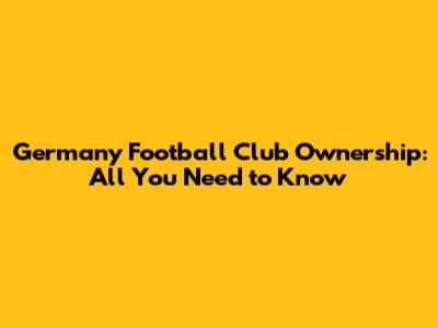 Germany Football Club Ownership: All You Need To Know