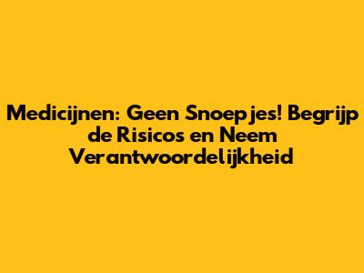 Medicijnen: Geen Snoepjes! Begrijp De Risico's En Neem Verantwoordelijkheid