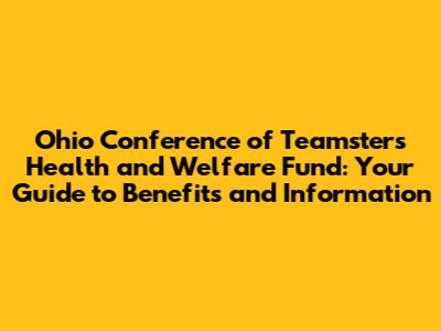 Hey guys! Let's dive into the Ohio Conference of Teamsters Health and Welfare Fund. If you're a member or just looking to learn more, this is your one-stop guide. We'll break down what the fund is all about, what benefits it offers, and how it supports Teamsters and their families in Ohio. Think of this as your friendly roadmap to understanding your healthcare and welfare benefits. So, buckle up, and letβs get started!