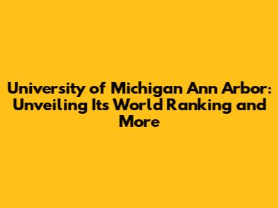 University Of Michigan Ann Arbor: World Ranking & More